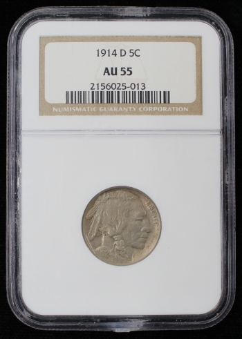 1914-D BUFFALO NICKEL 5C NGC AU55 SEMI KEY DATE (PQ047)