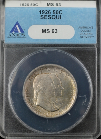 1926 SESQUICENTENNIAL CLASSIC COMMEMORATIVE 50C ANACS MS63 (32590)