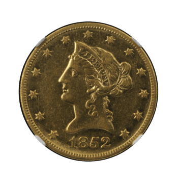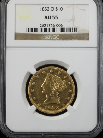 1852-O LIBERTY HEAD $10 GOLD EAGLE NGC AU55 POP 32+15! – LOW MINTAGE (46006)