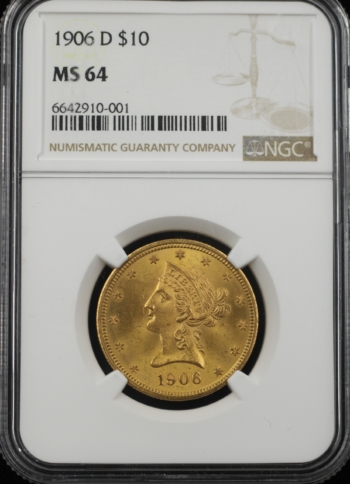1906-D LIBERTY HEAD GOLD $10 EAGLE NGC MS64 (10001)