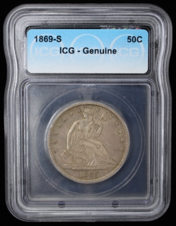 1869-S SEATED LIBERTY HALF DOLLAR 50C ICG GENUINE (PQ058)