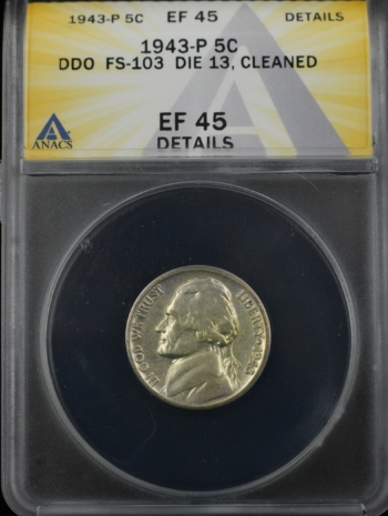 1943-P JEFFERSON NICKEL 5C ANACS XF DETAILS DOUBLED DIE OBVERSE FS-103 (97834)