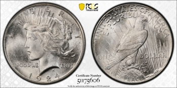 1924 PEACE DOLLAR $1 PCGS MS67 POP 82+18! (75606)