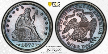 1873 SEATED LIBERTY QUARTER 25C PCGS PR65 ARROWS POP 17+8! (PQ108)