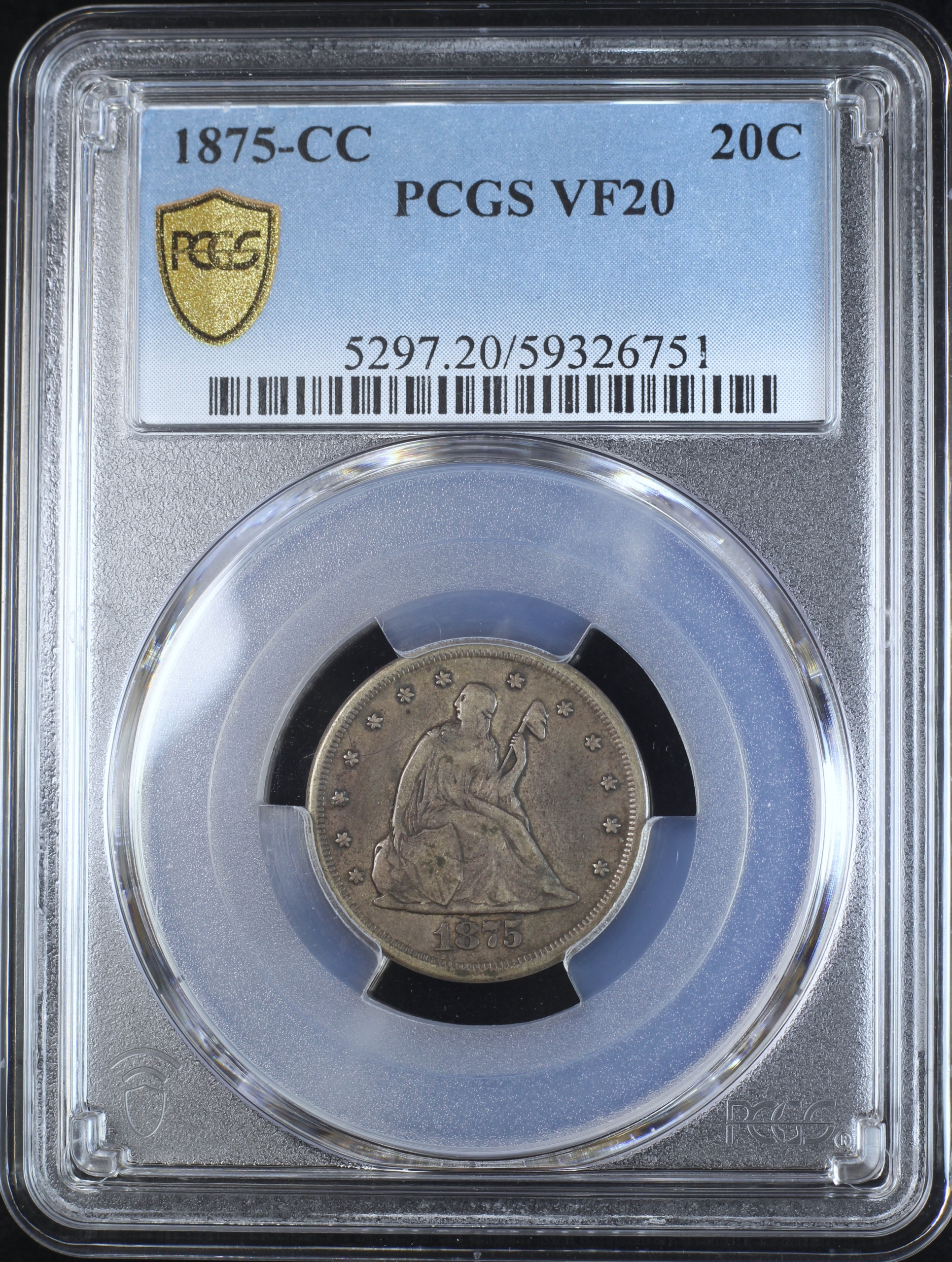 1875-CC TWENTY CENT PIECE 20C PCGS VF20 (PQ262)