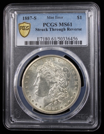 1887-S MORGAN DOLLAR $1 PCGS MS61 – STRUCK THROUGH REVERSE ERROR (36456)