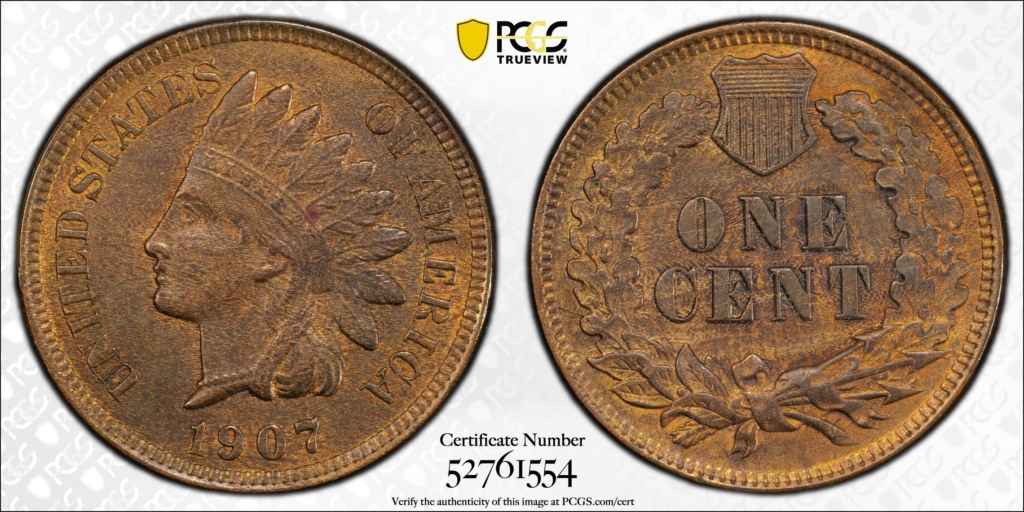 1907 INDIAN HEAD CENT 1C PCGS MS62BN (PQ041)