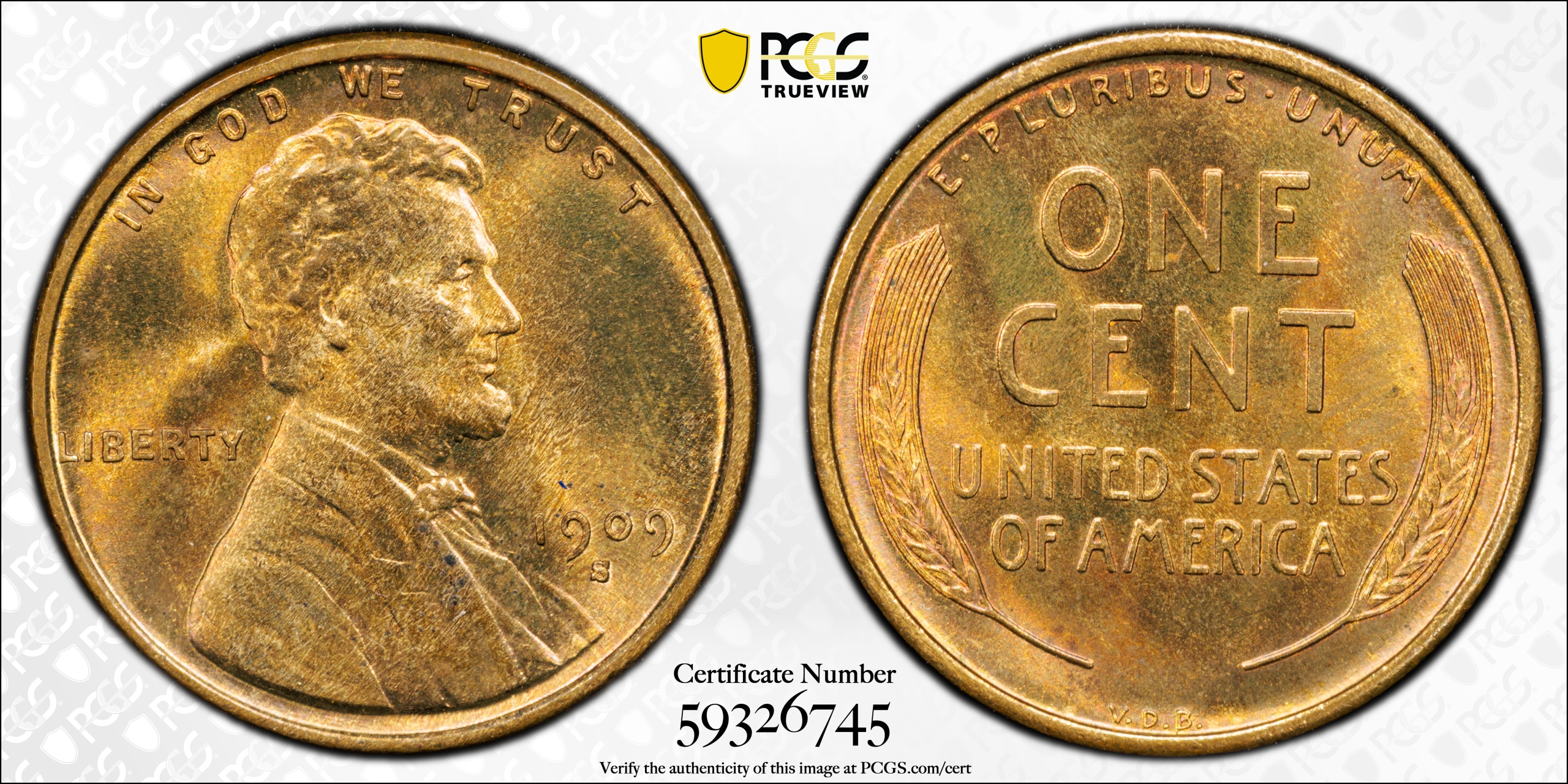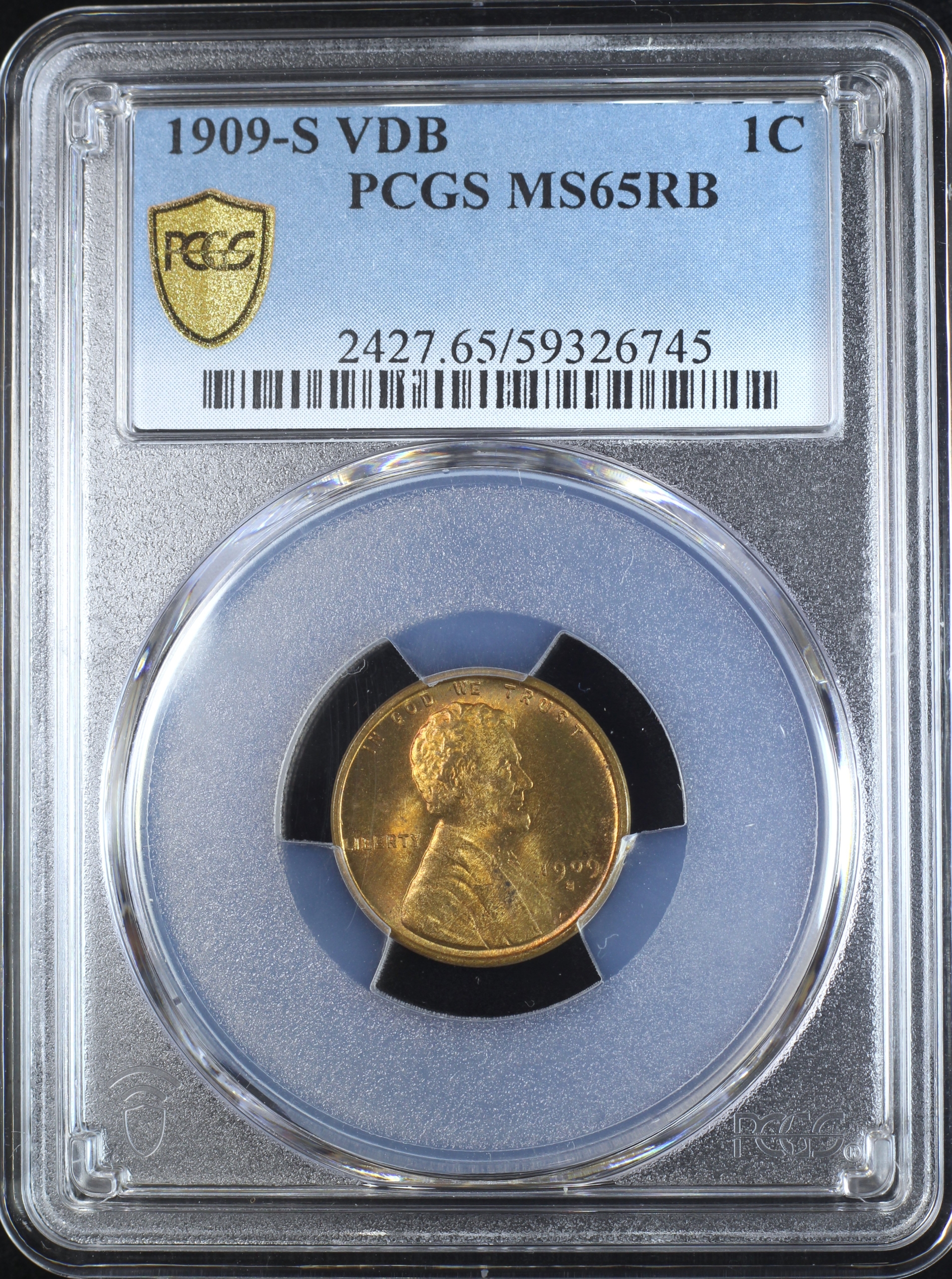 1909-S VDB LINCOLN WHEAT CENT 1C PCGS MS65 RB – KEY DATE (PQ256)