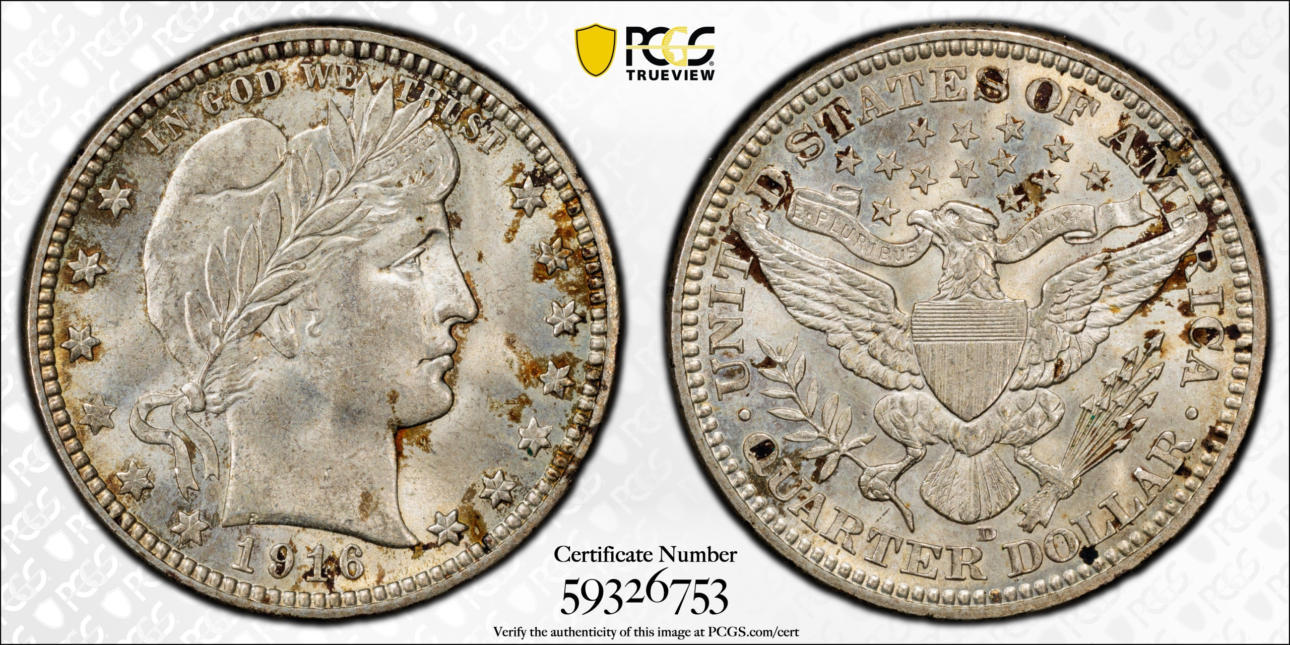 1916-D BARBER QUARTER 25C PCGS MS65 (PQ261)
