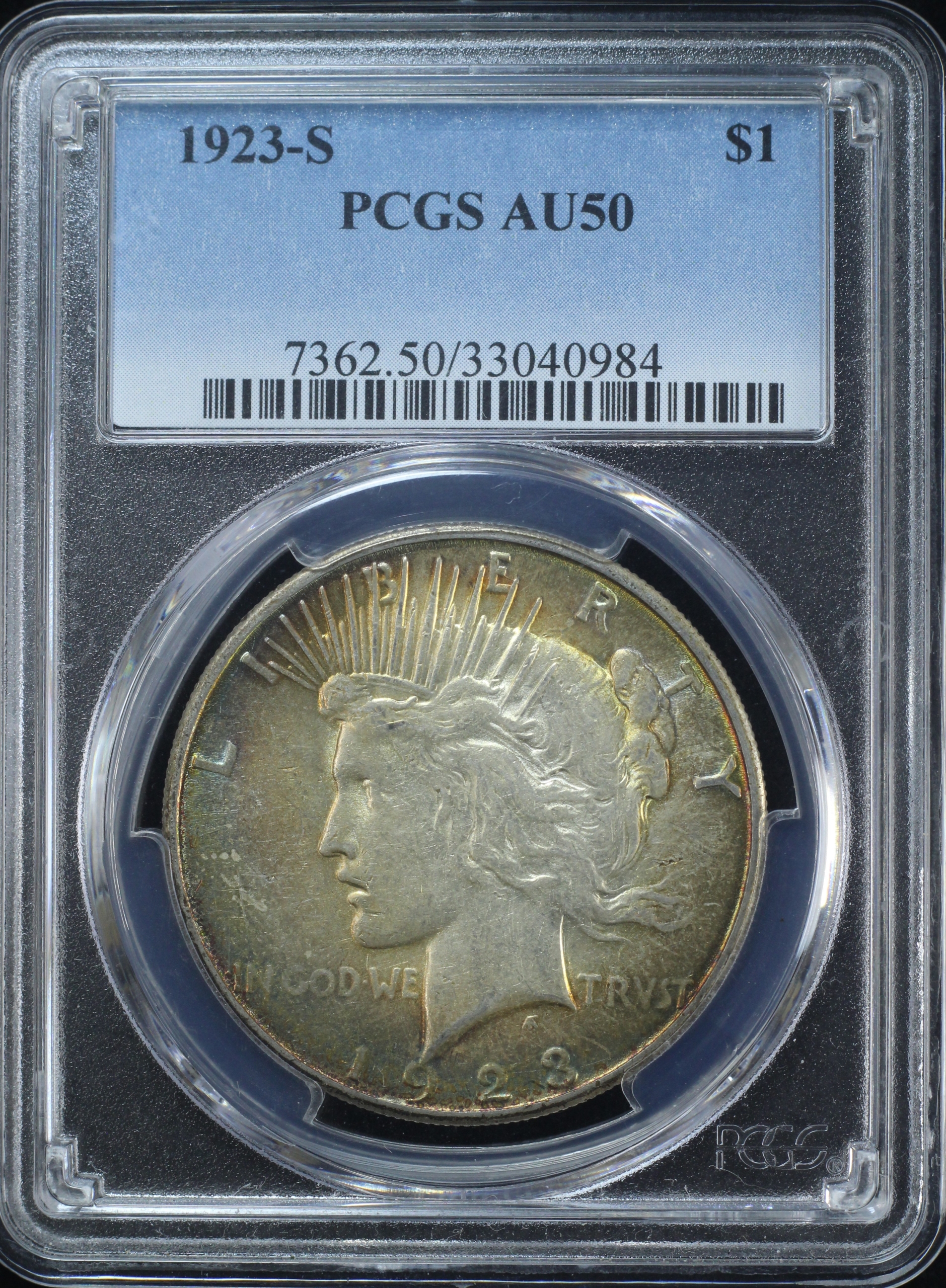 1923-S PEACE DOLLAR $1 PCGS AU50 – TONED (PQ150)