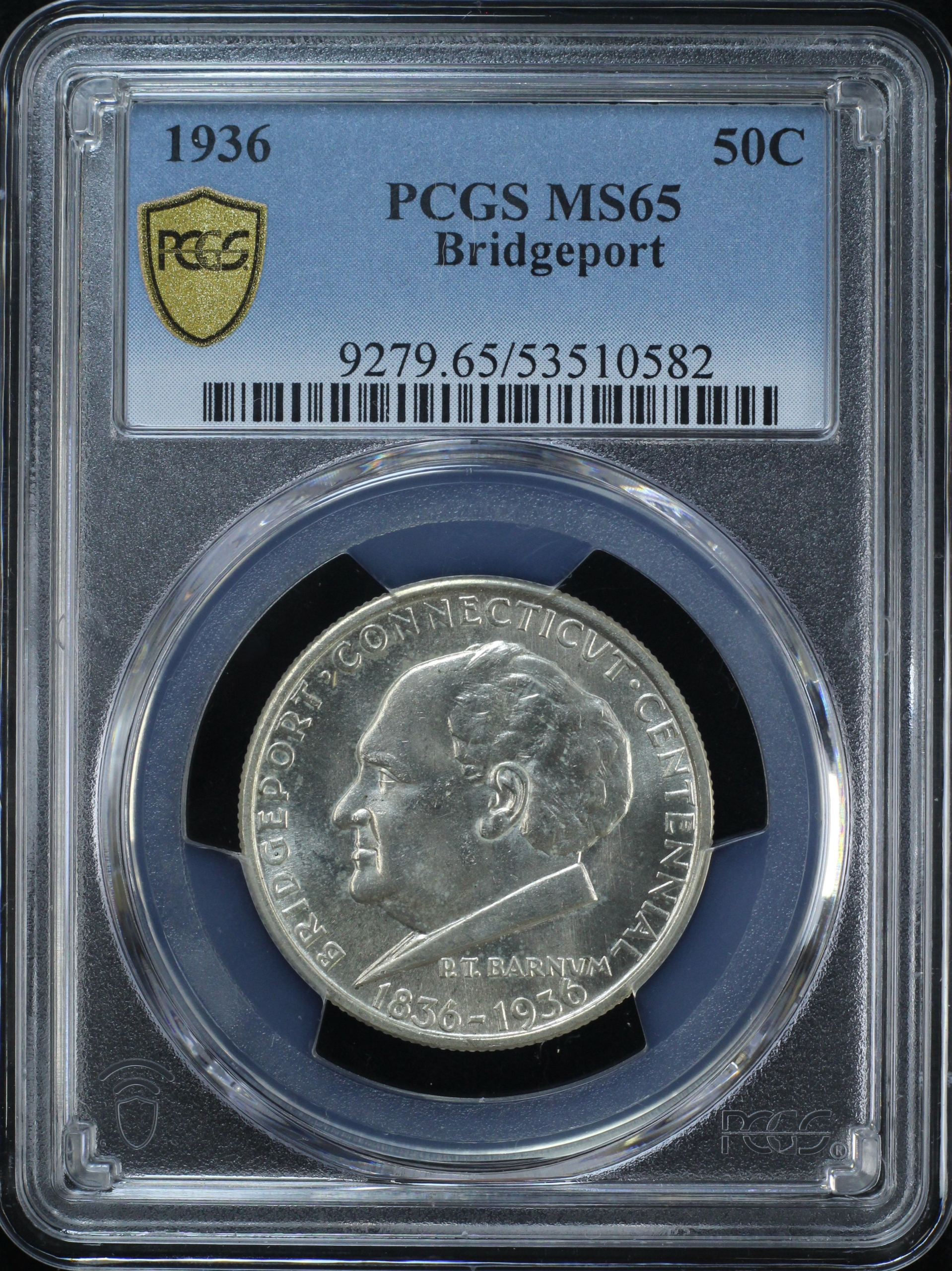 1936 BRIDGEPORT CLASSIC COMMEMORATIVE HALF DOLLAR 50C PCGS MS65 (PQ158)