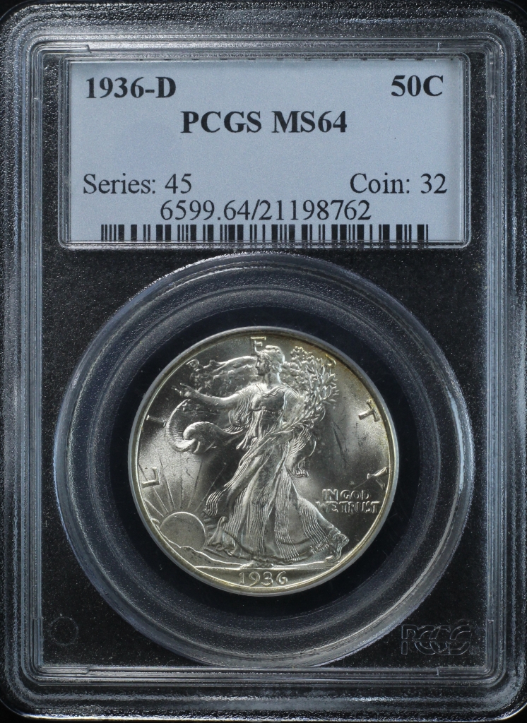 1936-D WALKING LIBERTY HALF DOLLAR 50C PCGS MS64 (PQ168)