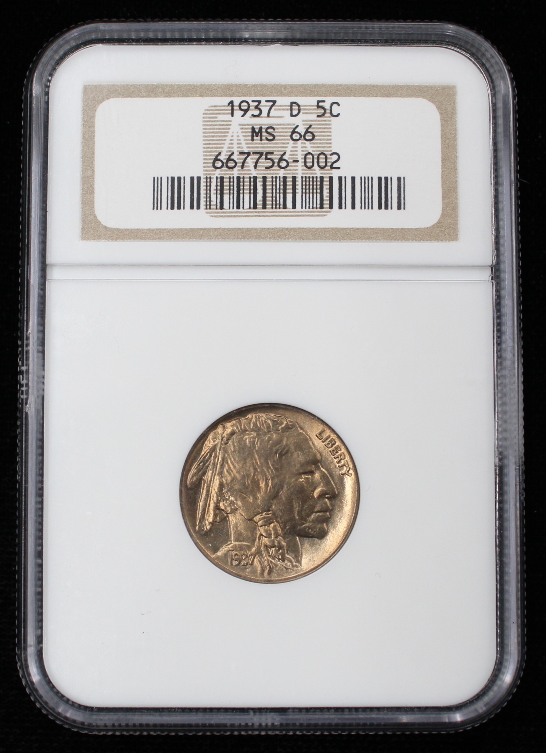 1937-D BUFFALO NICKEL 5C NGC MS66 (PQ045)