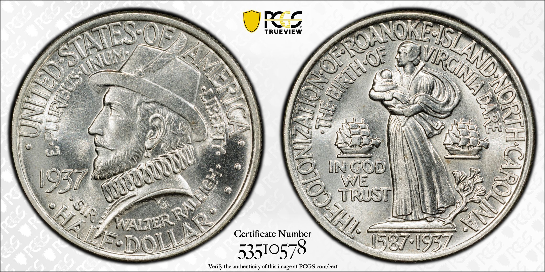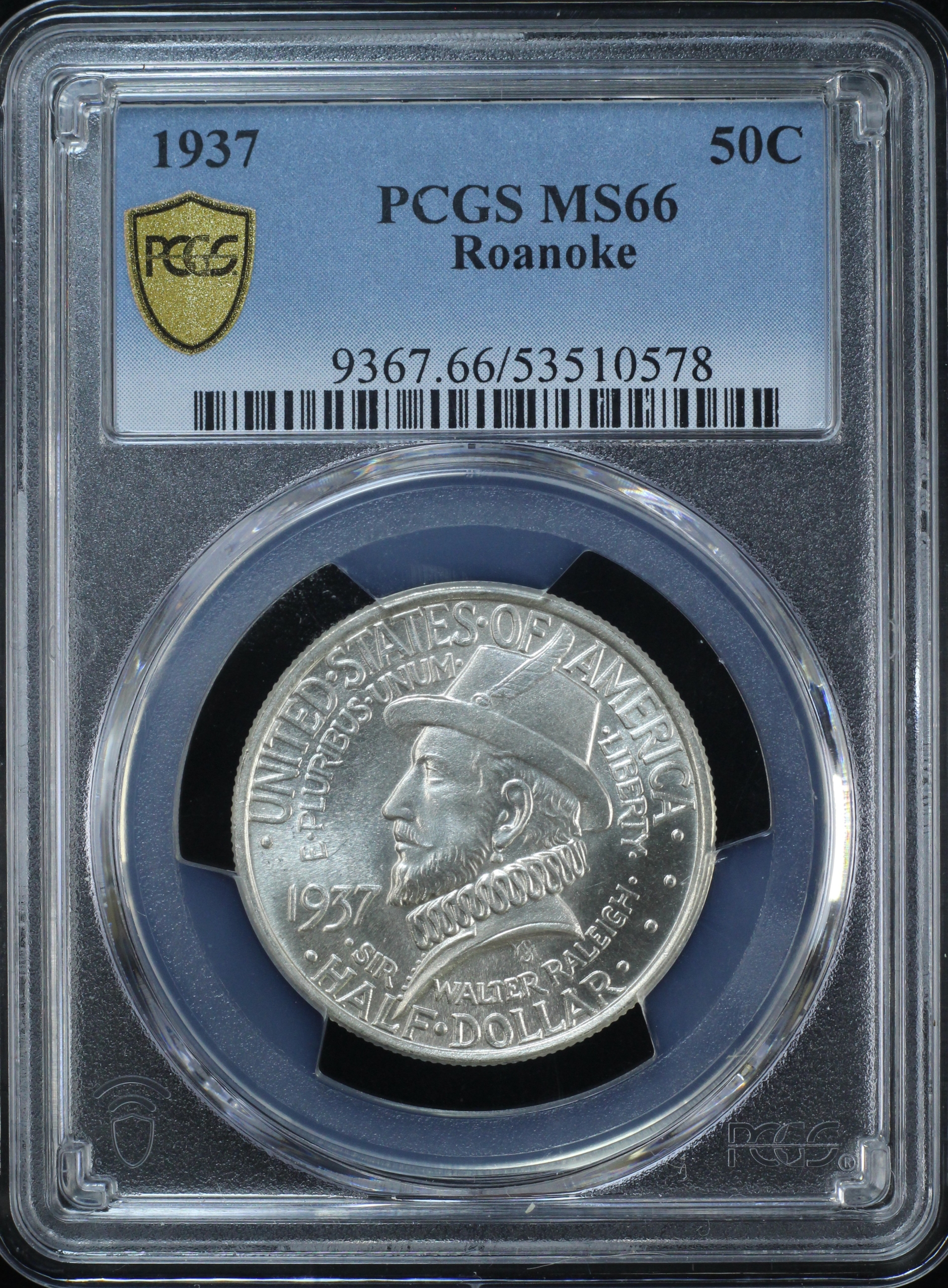 1937 ROANOKE CLASSIC COMMEMORATIVE HALF DOLLAR 50C PCGS MS66 (PQ154)