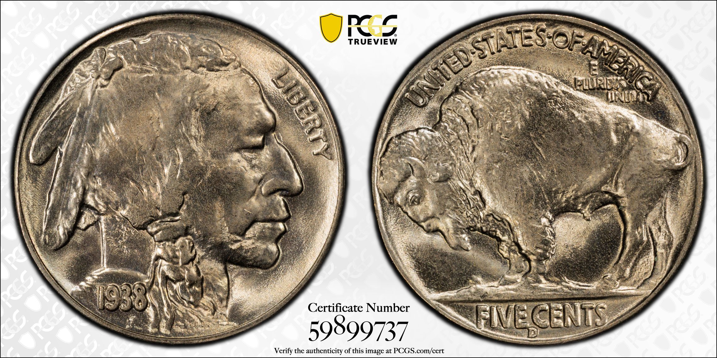 1938-D BUFFALO NICKEL 5C PCGS MS66 (PQ044)