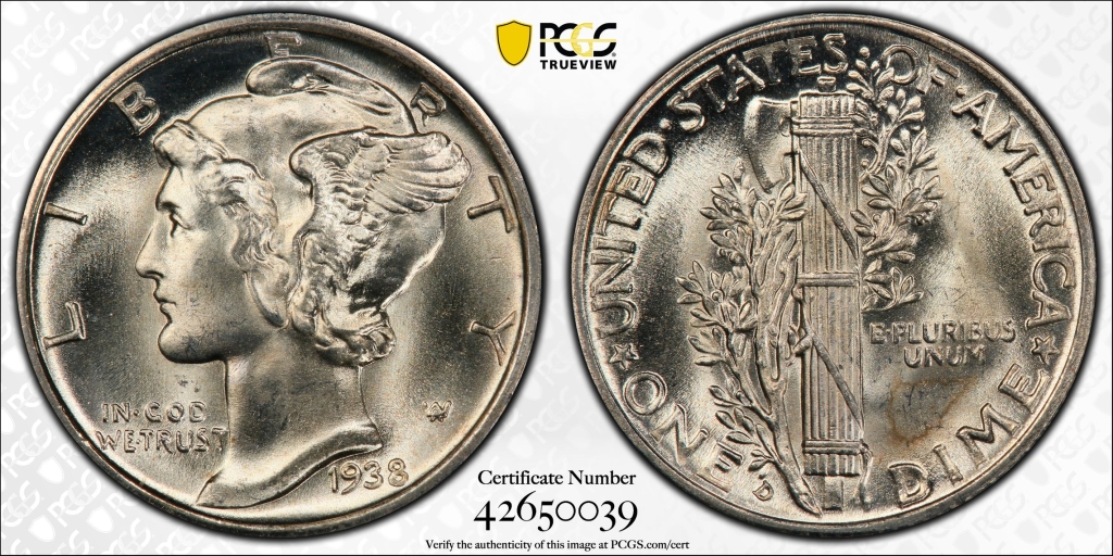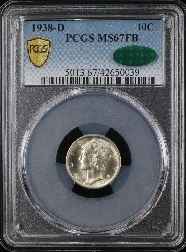 1938-D MERCURY DIME 10C PCGS MS67FB *CAC* FULL BANDS (PQ127)