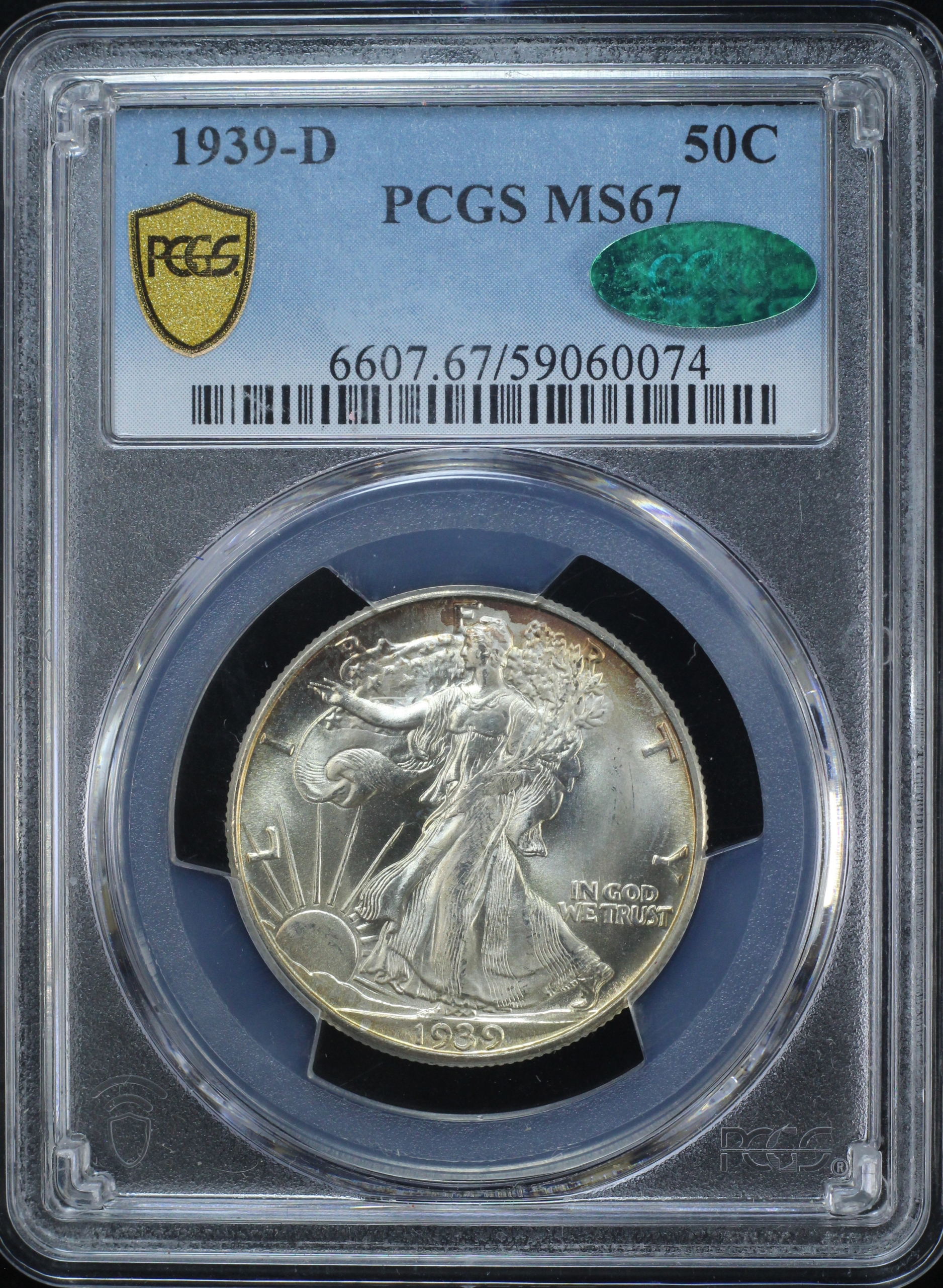 1939-D WALKING LIBERTY HALF DOLLAR 50C PCGS MS67 *CAC* (PQ151)