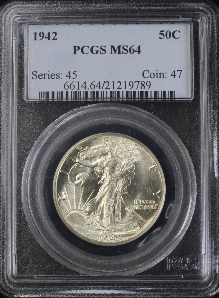 1942 WALKING LIBERTY HALF DOLLAR 50C PCGS MS64 (PQ181)