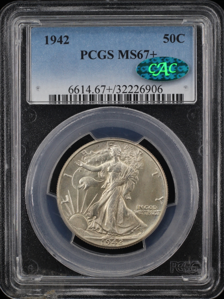 1942 WALKING LIBERTY HALF DOLLAR 50C PCGS MS67+ *CAC* (PQ091)