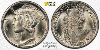 1939-D MERCURY DIME 10C PCGS MS67FB – FULL BANDS (PQ134)