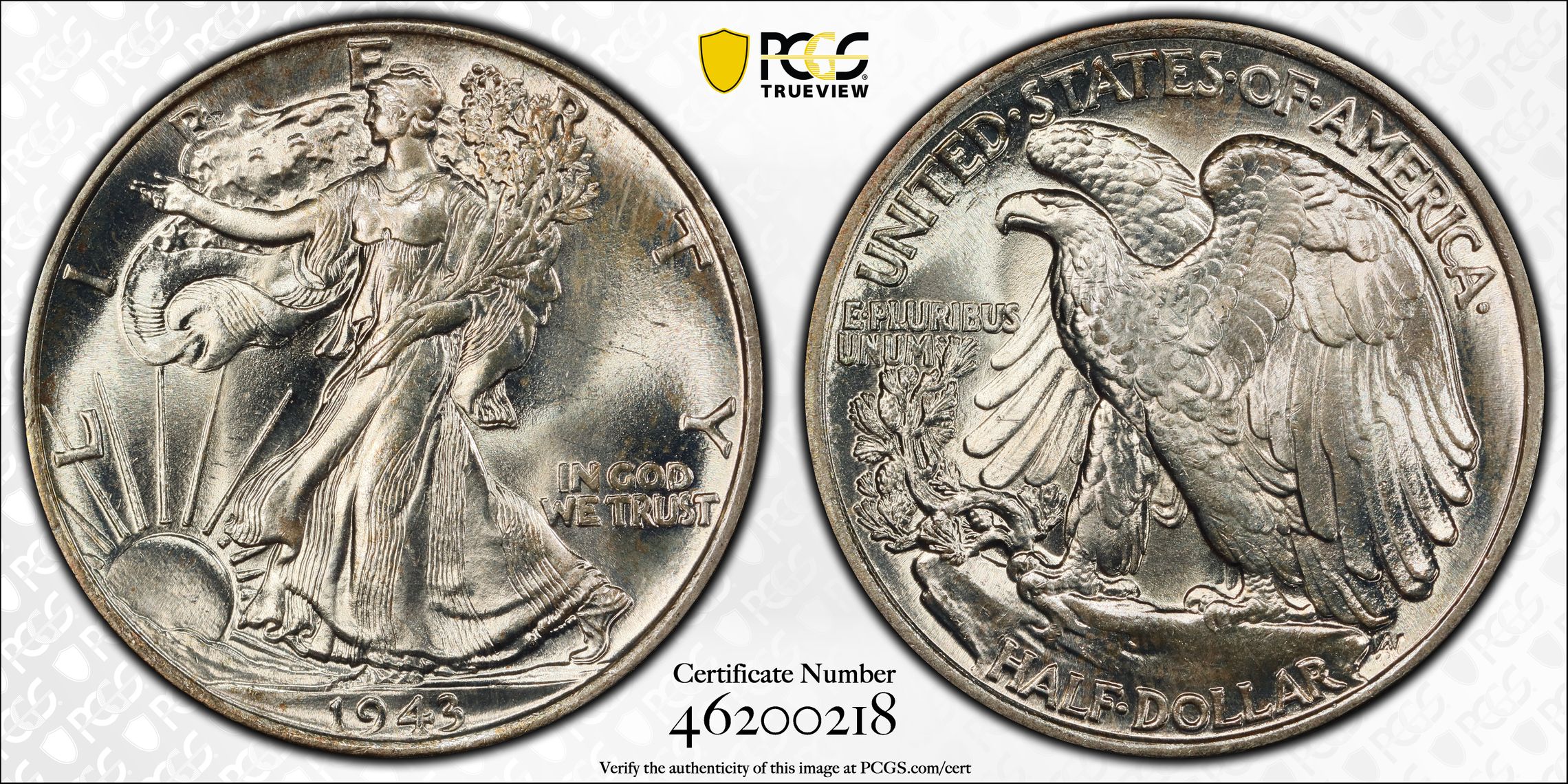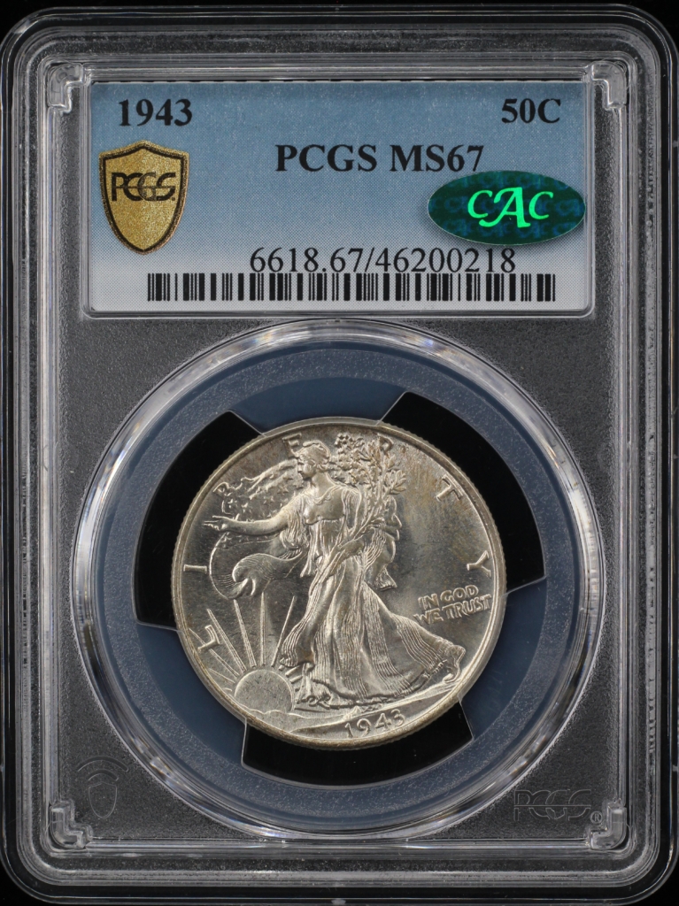 1943 WALKING LIBERTY HALF DOLLAR 50C PCGS MS67 *CAC* (PQ092)