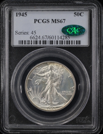 1945 WALKING LIBERTY HALF DOLLAR 50C PCGS MS67 *CAC* (PQ094)