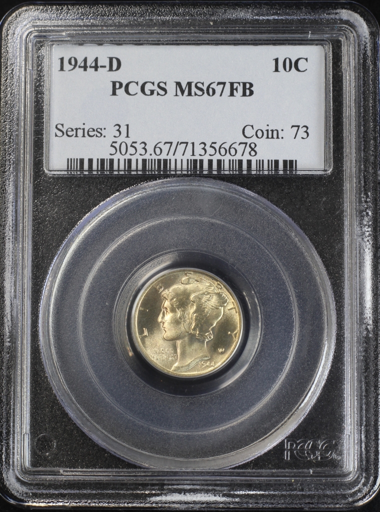 1944-D MERCURY DIME 10C PCGS MS67FB – FULL BANDS (PQ188)