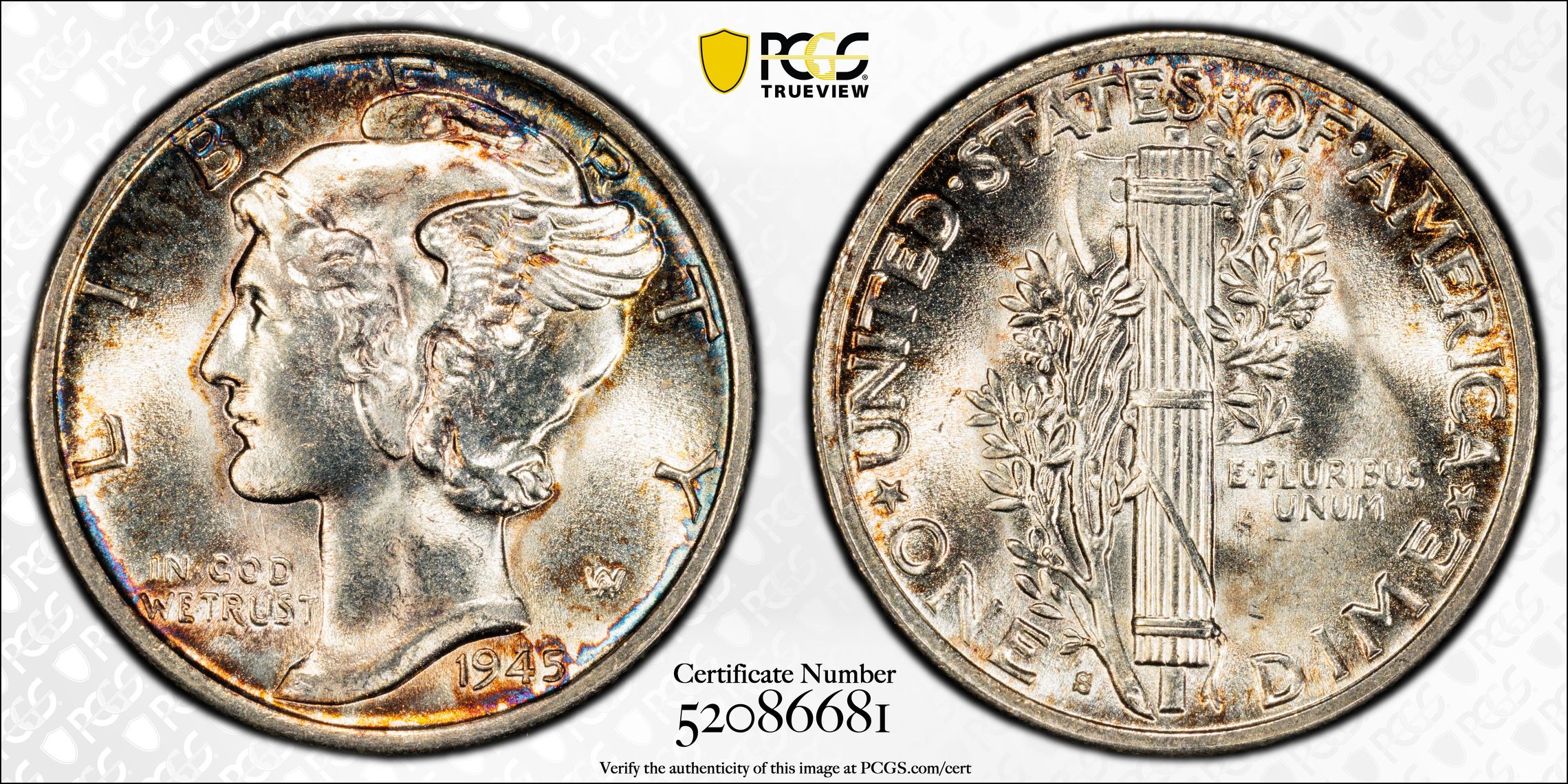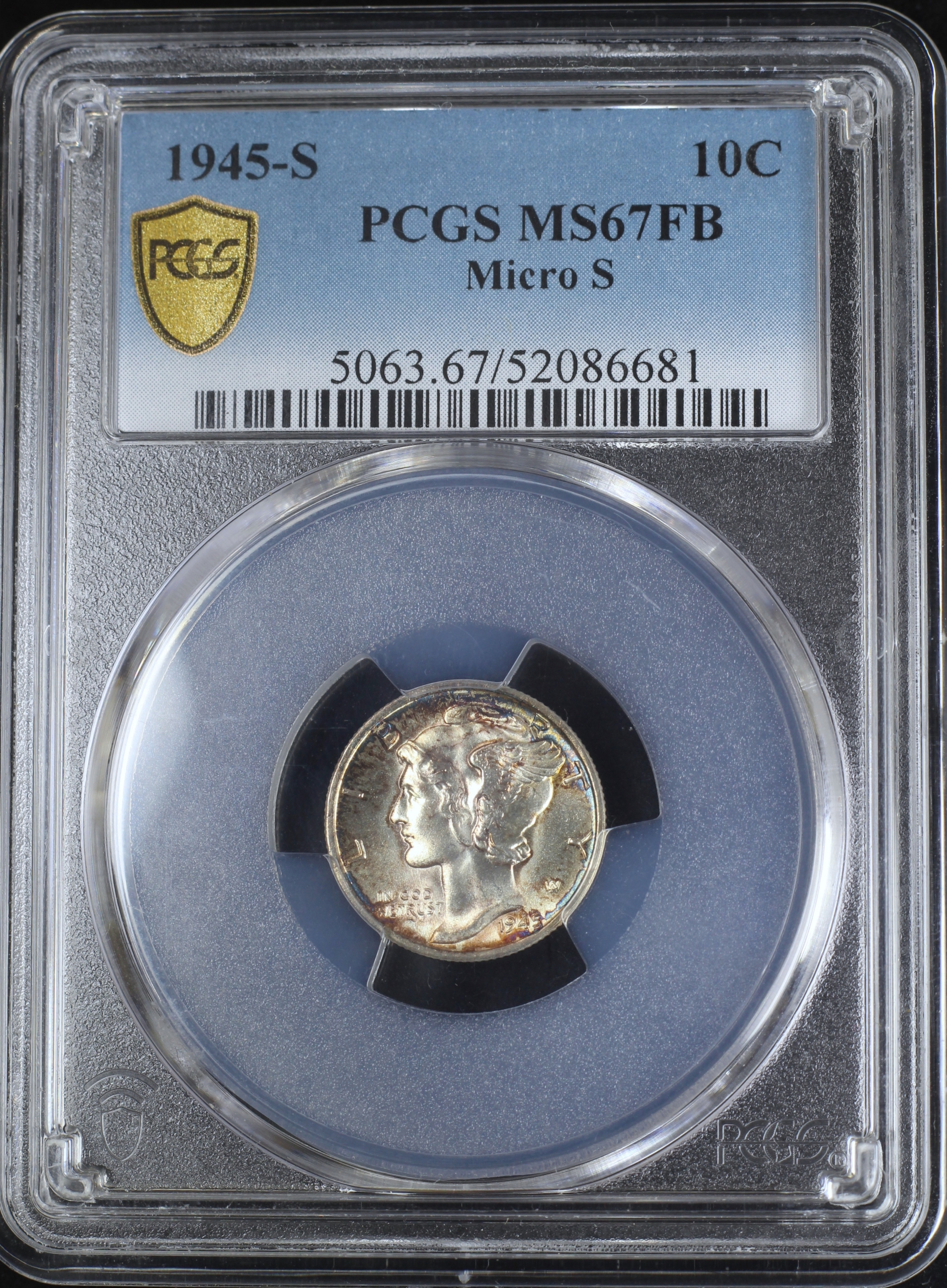 1945-S MERCURY DIME 10C PCGS MS67FB – MICRO S – FULL BANDS (PQ233)