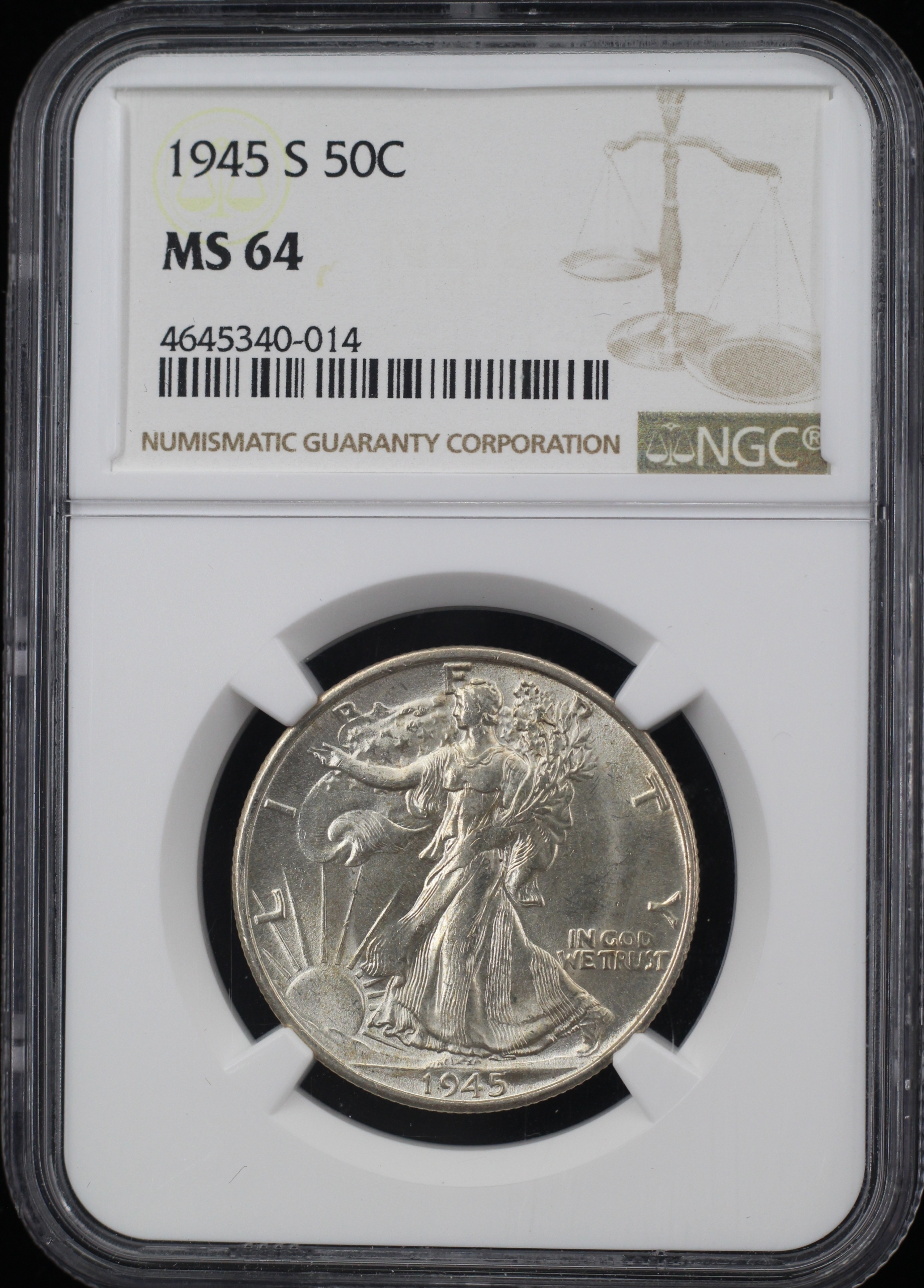 1945-S WALKING LIBERTY HALF DOLLAR 50C NGC MS64 (PQ071)