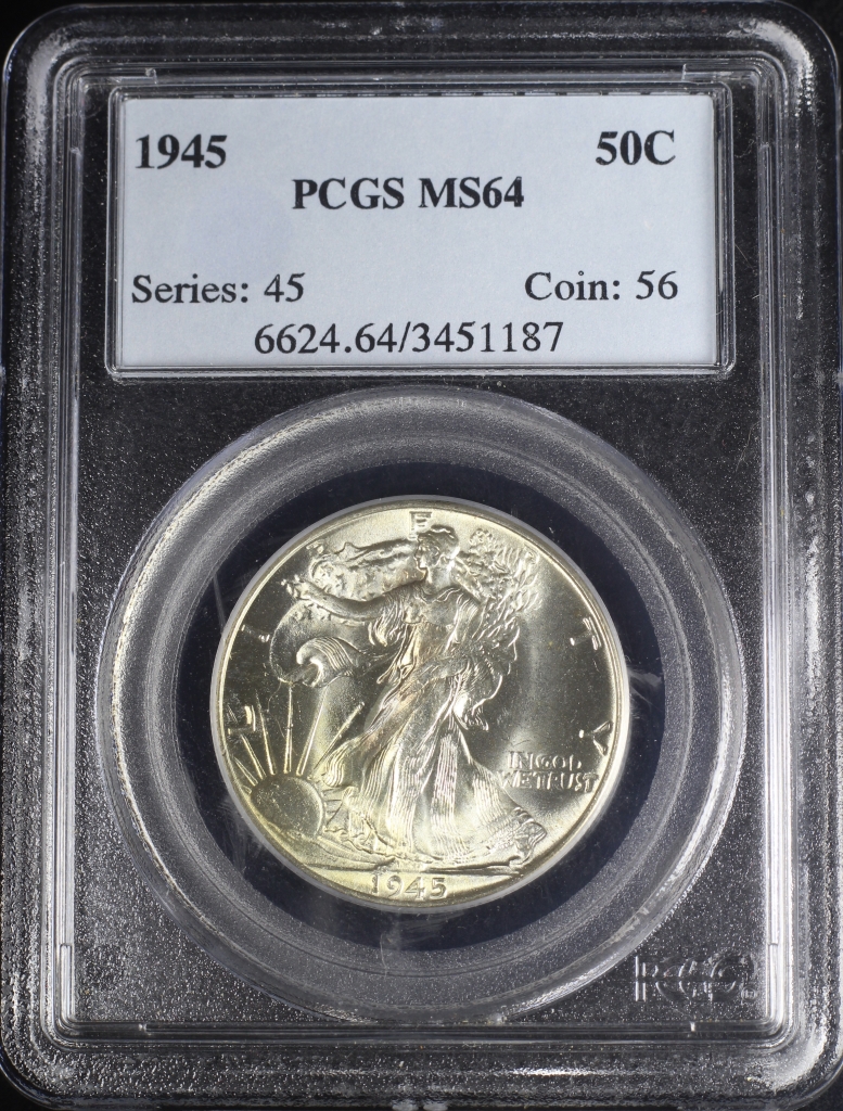 1945 WALKING LIBERTY HALF DOLLAR 50C PCGS MS64 (PQ212)