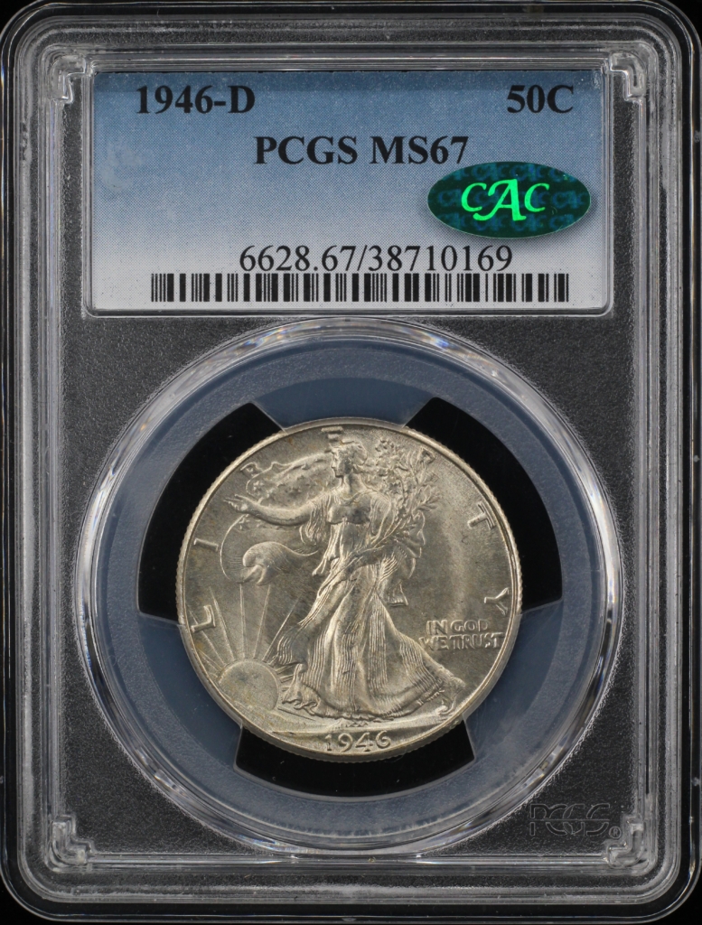 1946-D WALKING LIBERTY HALF DOLLAR 50C PCGS MS67 *CAC* (PQ095)