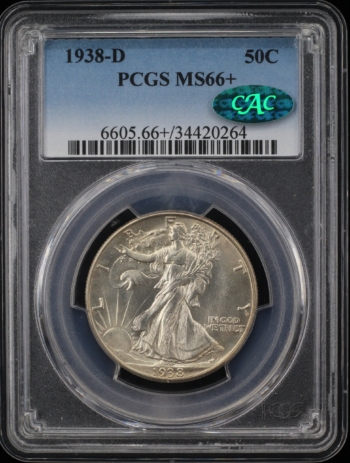 1938-D WALKING LIBERTY HALF DOLLAR 50C PCGS MS66+ *CAC* (PQ087)