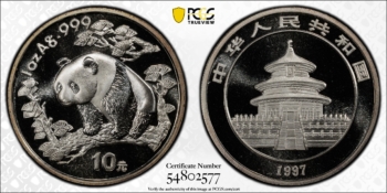 1997 CHINA 10 YUAN SILVER PANDA PCGS MS69 – SMALL DATE PAN-289A (02577)