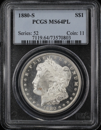 1880-S MORGAN DOLLAR $1 PCGS MS64PL PROOFLIKE (PQ061)