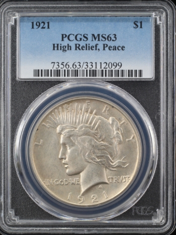 1921 PEACE DOLLAR $1 PCGS MS63 HIGH RELIEF (PQ077)