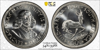 1961 SOUTH AFRICA 50C PROOFLIKE PCGS PL67 – JAN VAN RIEBEECK (03988)